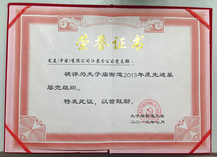 完美公司被授予2013年度中国食品安全年会科技创新先进单位