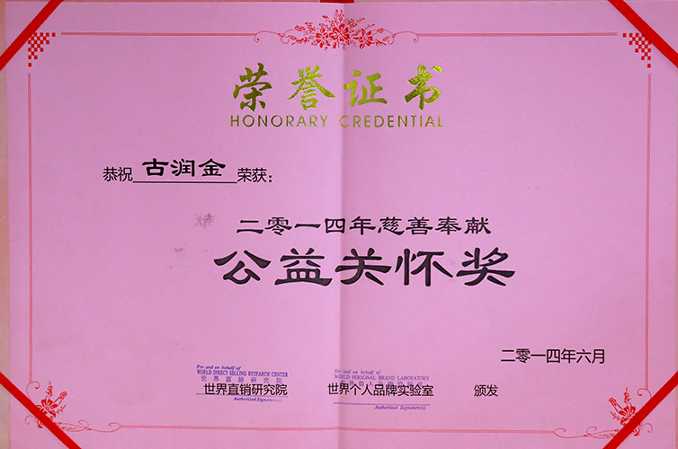 2014 古润金荣获公益关怀奖(证书)