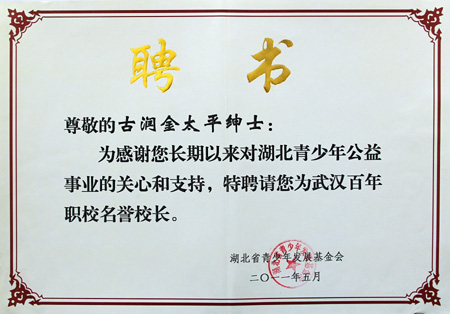 古润金董事长被聘为武汉百年职校名誉校长