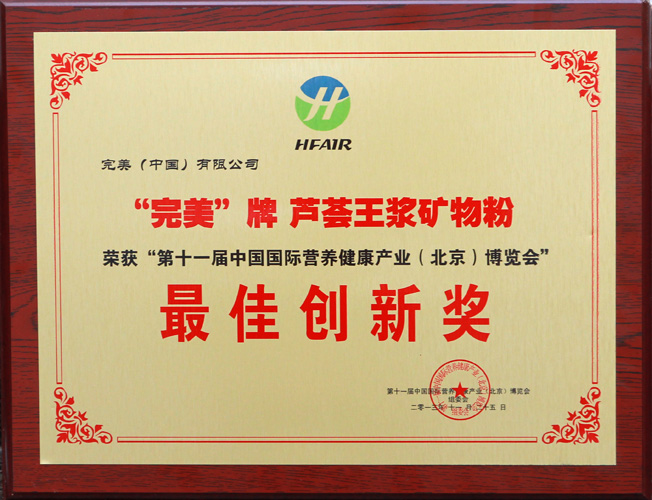 完美牌芦荟王浆矿物粉荣获最佳创新奖
