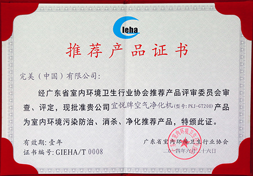空气净化机推荐产品证书