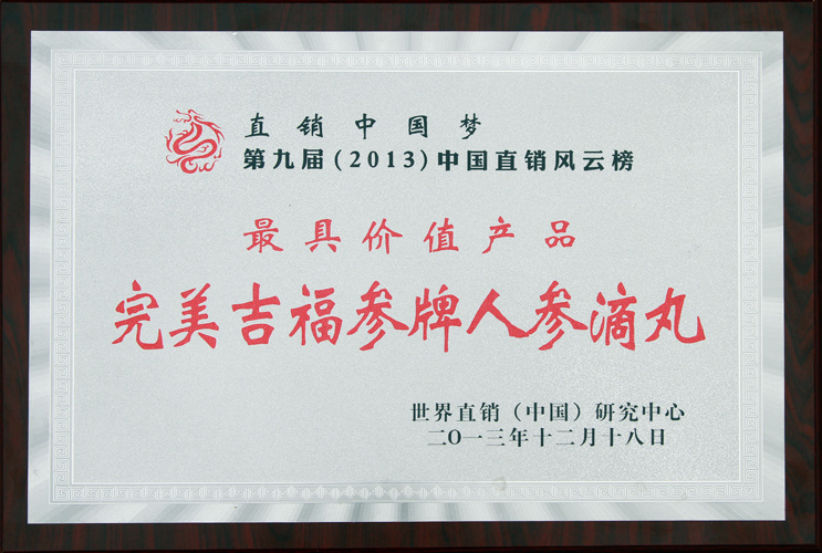 完美吉福参人参滴丸荣获最具价值产品