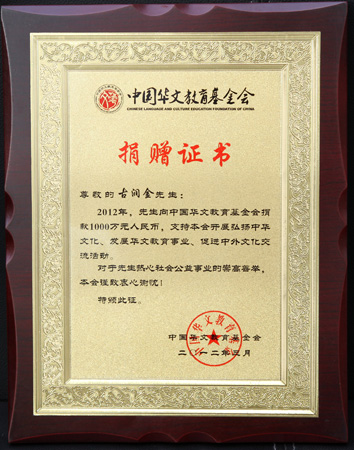 向华文教育基金会捐款1000万证书
