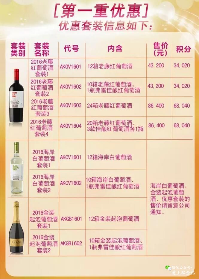 ❷.每月购买以上优惠套装获得的晚宴资格可累计,获得的资格不封顶,例:A顾客6月购买1套AKOV1601和1套AKOV1602,即可获得2个晚宴资格,以此类推;