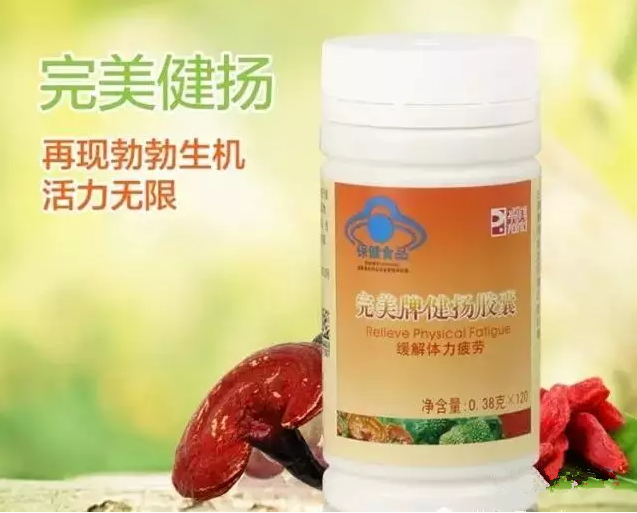 由黄精提取物、巴戟天提取物、枸杞子提取物、灵芝提取物、制何首乌提取物、三七提取物、硬脂酸镁、二氧化硅为主要原料,运用现代先进工艺研制而成的保健食品,经动物功能试验证明,完美牌健扬胶囊具有补气益肾、强健筋骨、补益精血、缓解体力疲劳等功效。