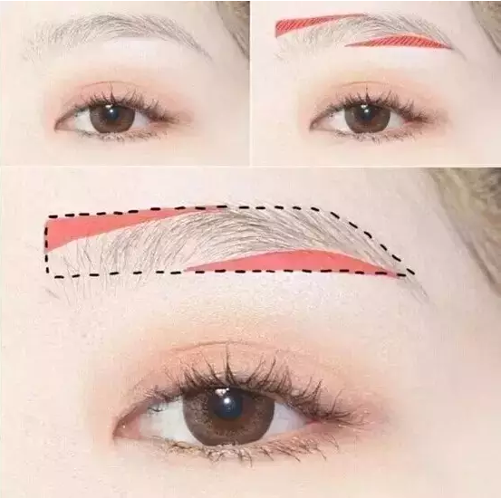 画眉之前,定型很重要。先找好眉峰、眉尾和眉头。