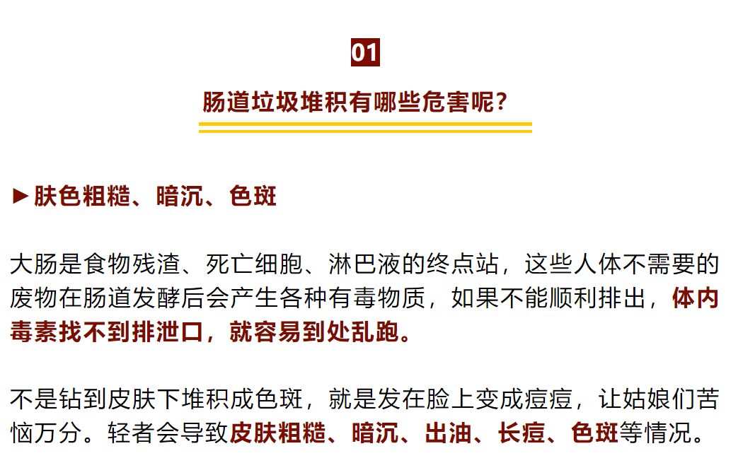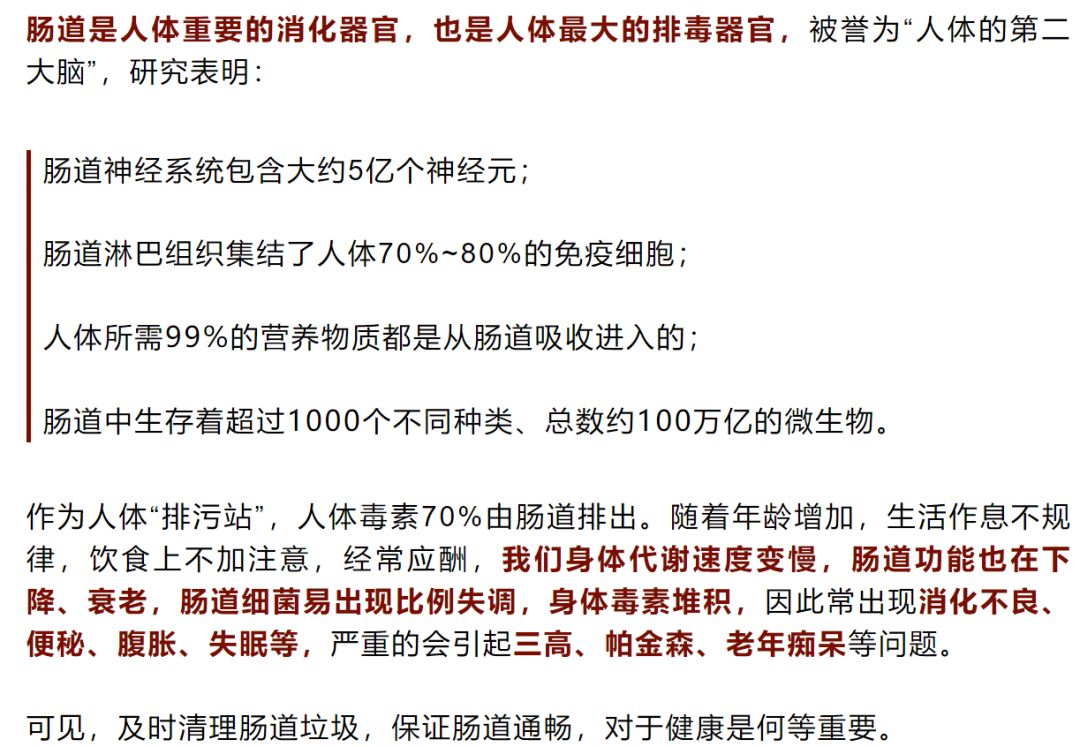 而且我们身体跟肠道微生物菌群,是共生和寄生的关系。肠道垃圾的堆积,也会在日积月累中,影响整个身体的健康状况,对肝脏,心脑血管,免疫系统,肾脏都有所影响,成为引起诸多疾病的根源。