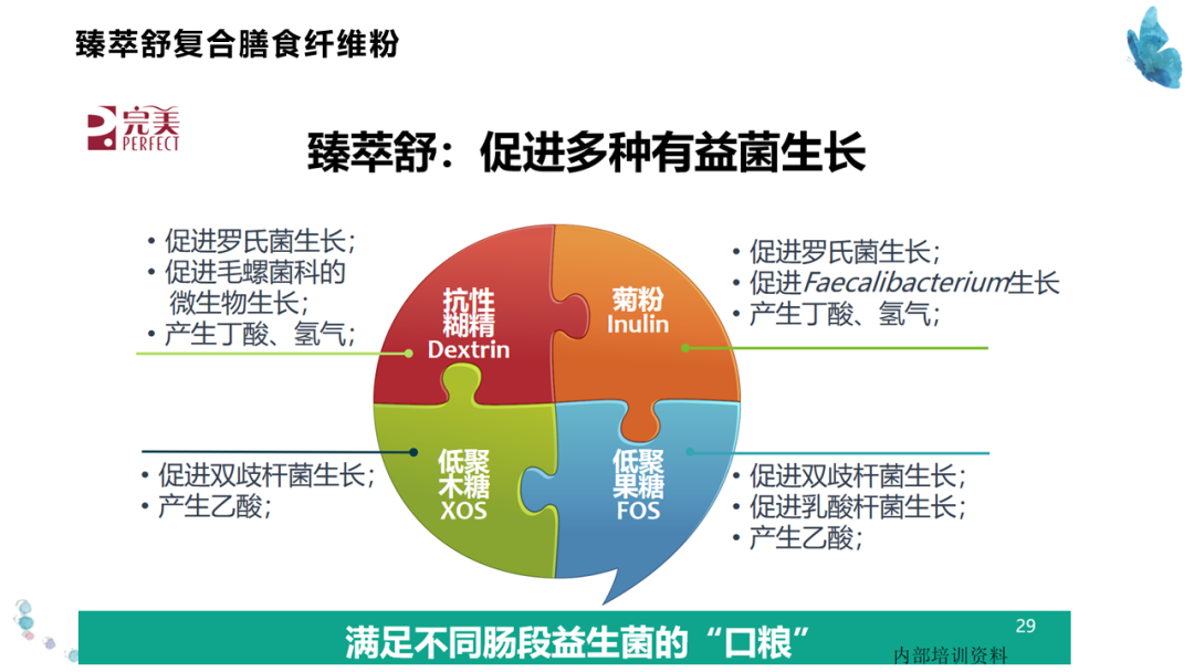 1、超级益生元:满足不同肠段不同益生菌的“口粮”。