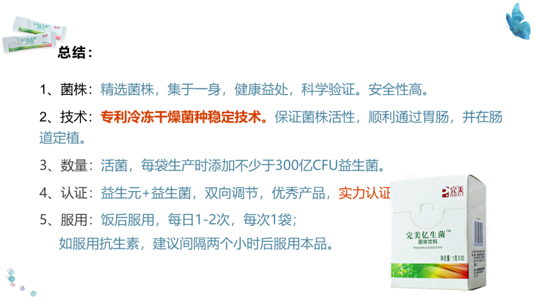 2、技术:专利冷冻干燥菌种稳定技术。保证菌株活性,顺利通过胃肠,并在肠道定植。