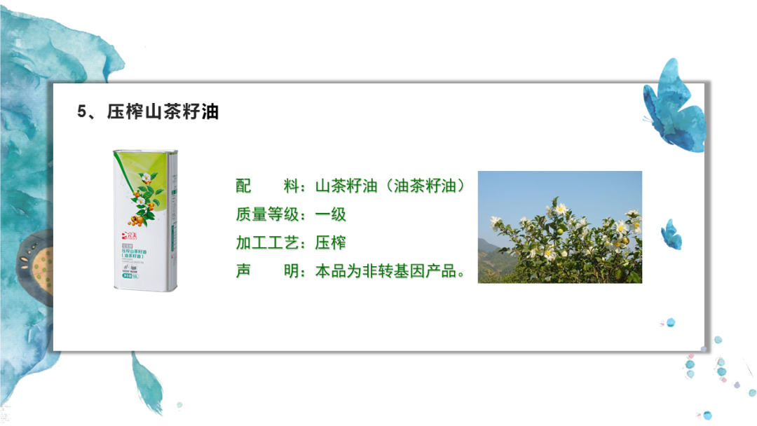 5、4不含(不含胆固醇、不含黄曲霉素、不含防腐剂、物理压榨不含化学残留)