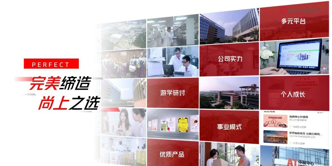 全力打造数字化,年轻化,时尚化的未来。这里有值得您拥有的完美产品。产品是信任的开始,信任开启美好。完美产品源于全体完美人追求完美的坚定信念,源于公司对研发和科技创新的全情投入。愿意从农田到餐桌每一步的严格把控。完美产品始终服务于消费者对美好生活的无限向往,健康,美容,家居在产品生命周期的每一个环节,全力以赴,用心呵护您的每一天。这里有值得您选择的事业良机。机遇总是留给那些有准备的人,人生和事业的精彩有时就源于一次正确的选择。20多年不懈追求,文化之魂深深扎下完美之根。致力于为创业伙伴提供事业发展的良机。