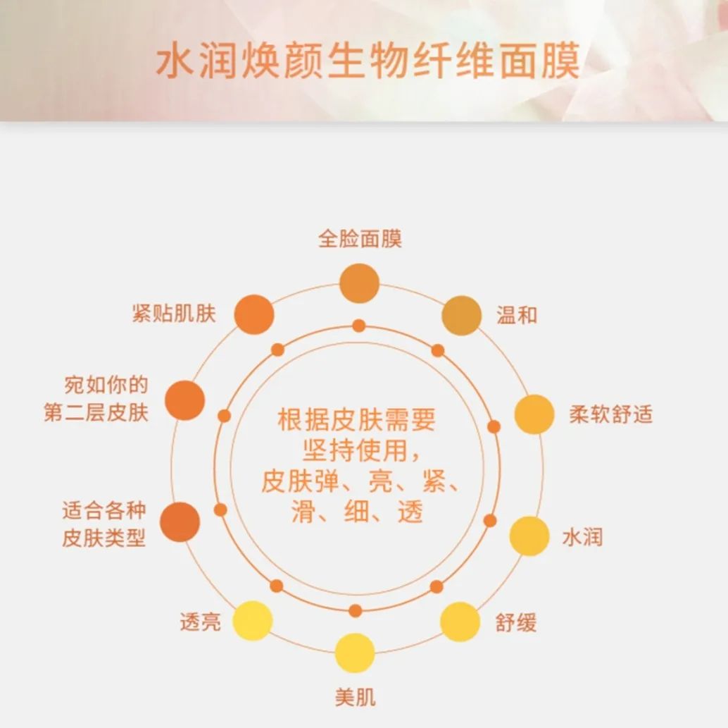 采用微生物培养技术精制而成的生物纤维材质,能与肌肤紧密贴合,将活性精华渗入到肌肤深处。