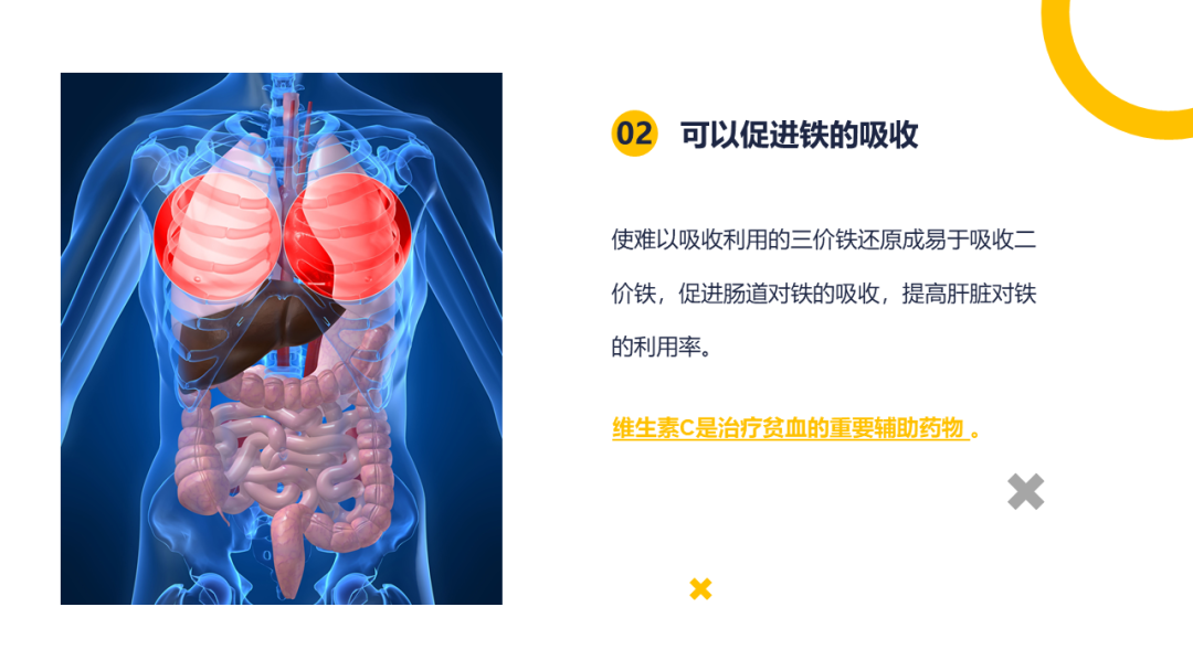 使难以吸收利用的三价铁还原成易于吸收二价铁,促进肠道对铁的吸收,提高肝脏对铁的利用率。
