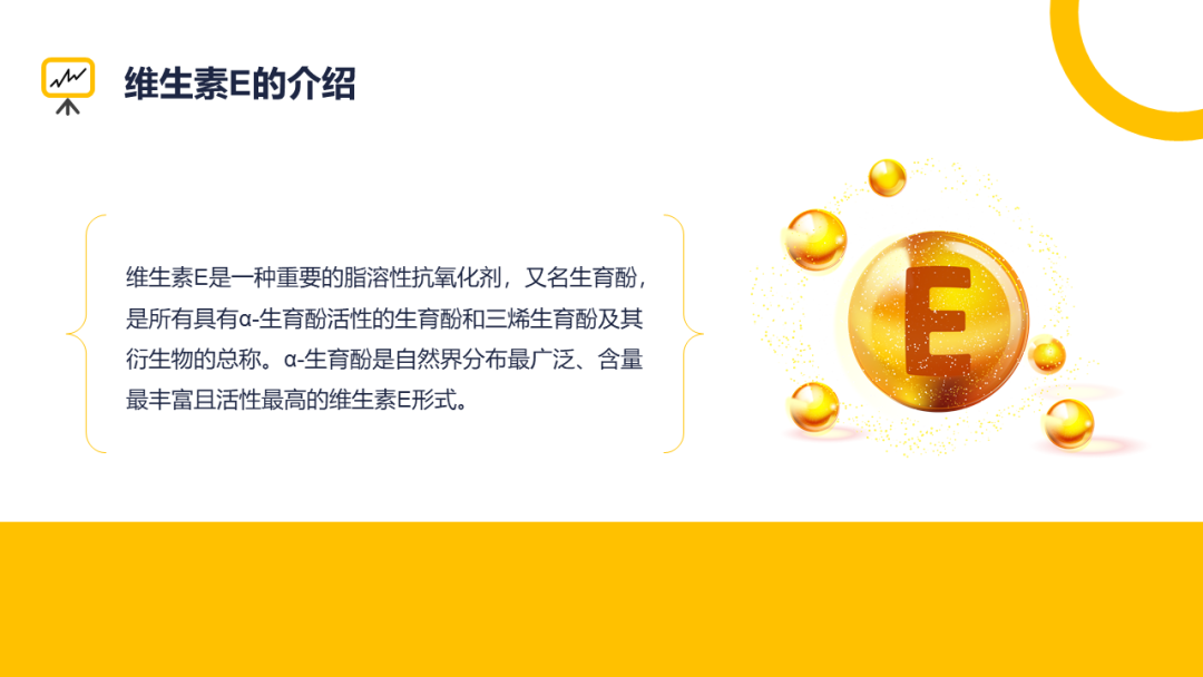 维生素E是一种重要的脂溶性抗氧化剂,又名生育酚,是所有具有α-生育酚活性的生育酚和三烯生育酚及其衍生物的总称。α-生育酚是自然界分布最广泛、含量最丰富且活性最高的维生素E形式。