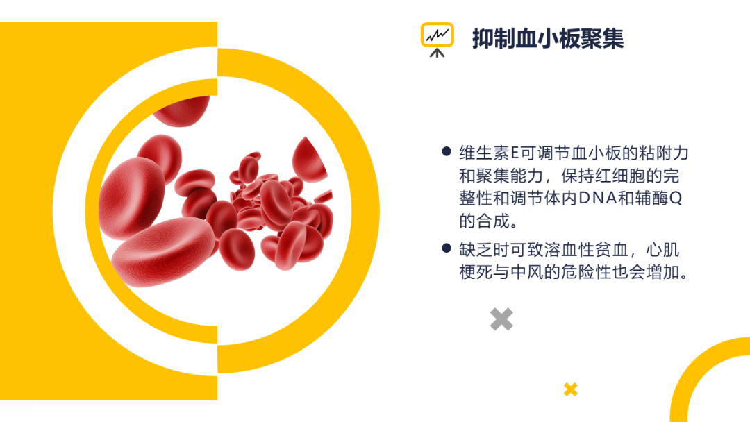 l维生素E可调节血小板的粘附力和聚集能力,保持红细胞的完整性和调节体内DNA和辅酶Q的合成。
