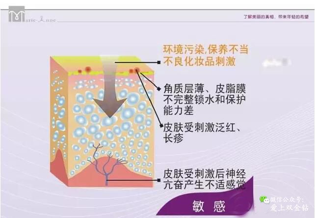 皮肤敏感的因素有先天性和后天性两种原因,先天性的是由于神经纤维过于亢奋,受到外界刺激即产生泛红,刺痛,长红疹等不适现象,一般先天性的都有遗传因素存在。另外大多数的皮肤敏感都是由于皮肤受到环境污染,使用不良化妆品,皮肤滋润度不够,或者保养不当造成皮肤的角质层太薄和皮肤膜过于薄弱,无法抵御外界刺激而引起。也容易出现泛红,刺痛,崩紧,掉皮,长红疹这些不适现象。
