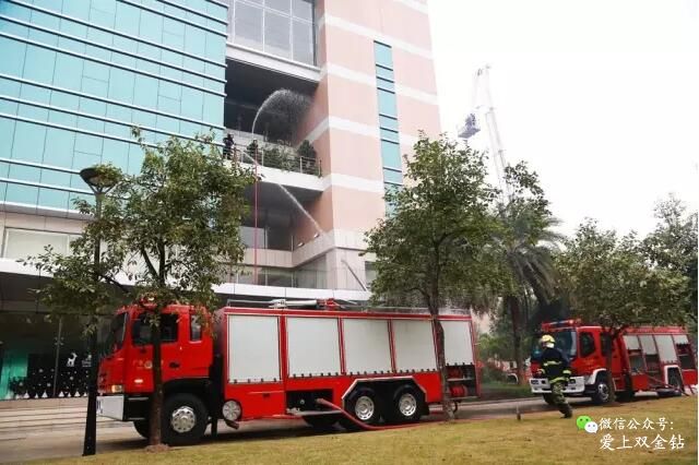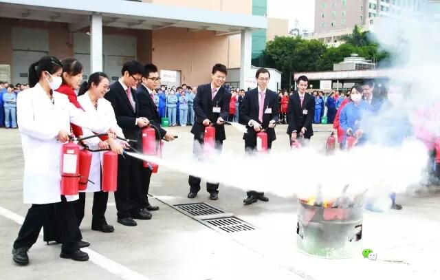 随着响亮、连续的火灾报警铃声突然响起,员工们迅速离开工作岗位,有条不紊地疏散到旷地集合,从报警器响起到集结完毕,只用了不到5分钟时间。工厂楼顶浓烟滚滚,消防车升起云梯,高压水枪喷向浓烟处“灭火”……