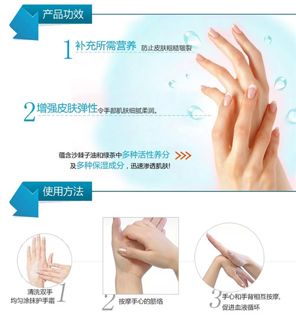 (4)经常使用,使肌肤更加细腻光泽、富有弹性,增添手部线条的柔美魅力。