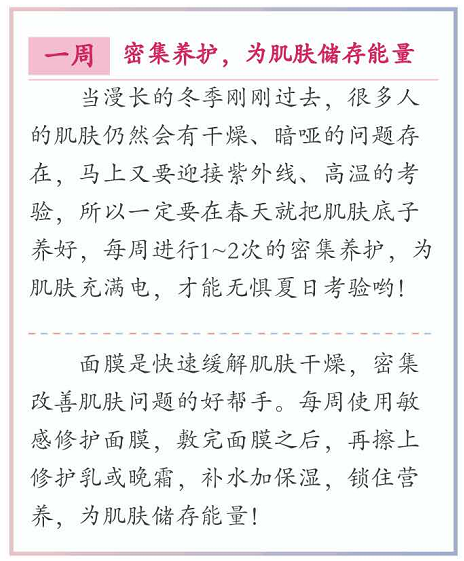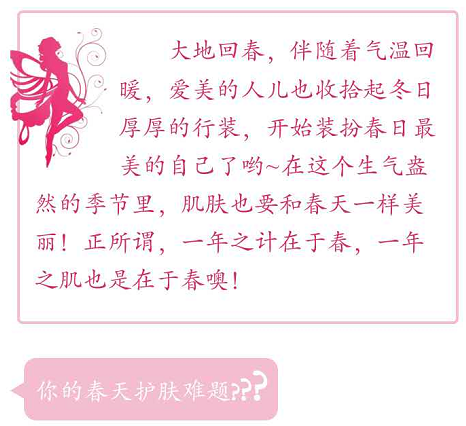 经历了一个漫长冬季的考验,肌肤慢慢沉淀了许多问题,加上春天日夜温差大,肌肤变得敏感,而皮脂分泌比较旺盛,空气中的粉尘、风沙、细菌也很容易阻塞毛孔,容易使肌肤泛红、过敏、长痘痘等。真是让人伤透了脑筋。如何在春日里拒绝敏感?可要好好下一番功夫哟!