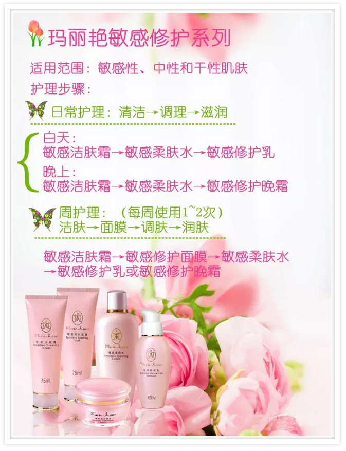针对敏感肌肤精选优质配方,质地温和、无刺激,具有修复作用,有效改善肌肤红丝现象,促进血液循环,提升肌肤的防御功能,经常使用能增加肌肤的滋润和保湿功效,让肌肤恢复弹性,更显青春活力。