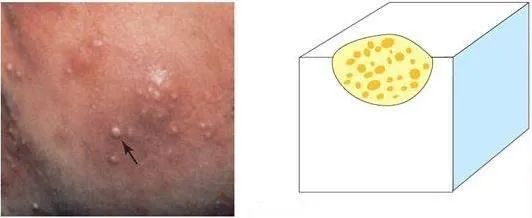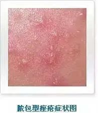 一般表现为初期发红后很快会化脓或者冒白头,挤出有脓血,部分丘疹再度感染,演化成丘疹型脓包,一般容易形成凹陷型疤痕。