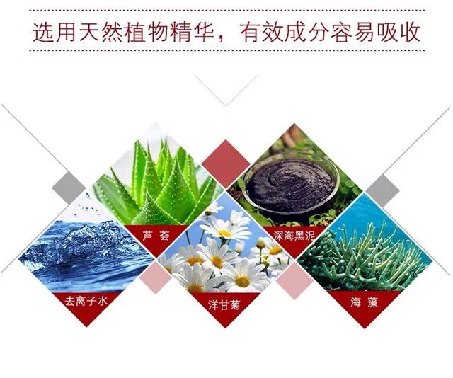 1.芦荟提取物:杀菌、消炎、收紧肌肤、抗辐射、促进受损细胞的恢复和再生功能。