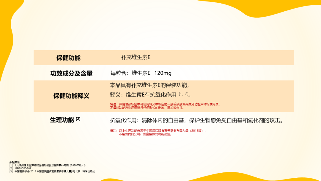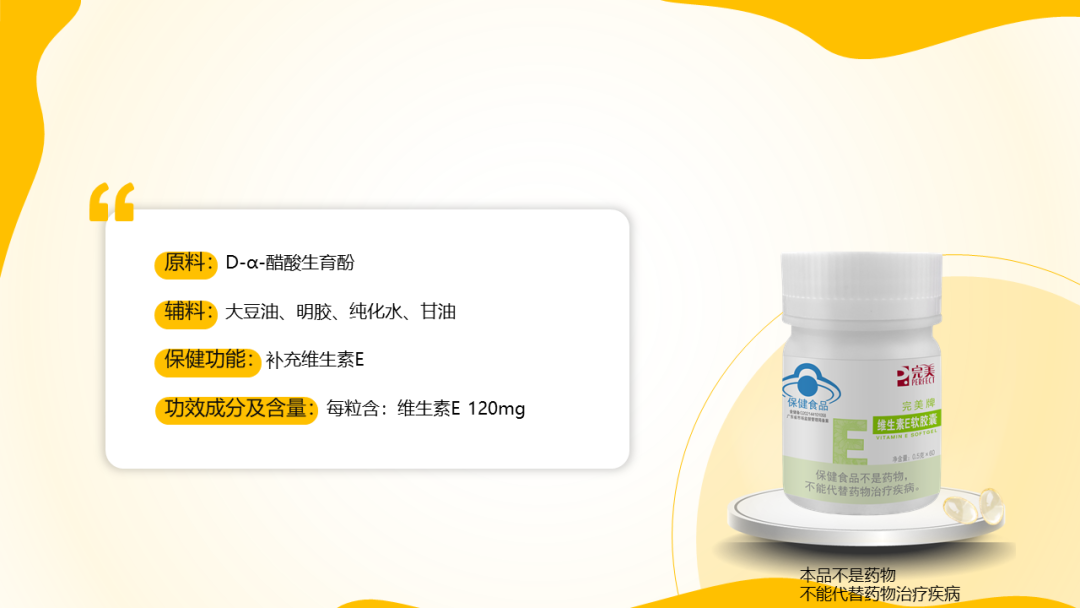 功效成分及含量:每粒含:维生素E 120mg