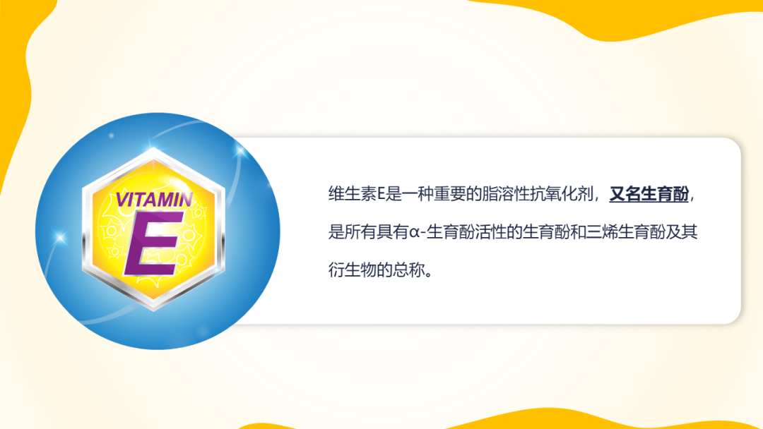 维生素E是一种重要的脂溶性抗氧化剂,又名生育酚,是所有具有α-生育酚活性的生育酚和三烯生育酚及其衍生物的总称。