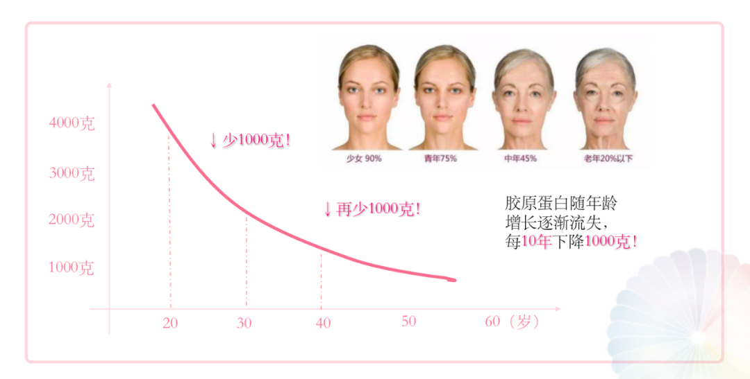 说到新年愿望,相信在大部分女性的愿望清单中“永葆年轻”都有一席之位。外表年轻的关键就是皮肤要好。皮肤衰老的本质是胶原蛋白流失。因此想要留住好皮肤,就要留住肌肤中的胶原蛋白。研究显示,人体胶原蛋白含量在20岁时达到顶峰,之后就走下坡路了,每10年会大约下降1000克⑤。此外,生育、更年期和不良的生活方式如熬夜、节食减肥等,都会加速胶原蛋白的流失。所以要想肌肤维持青春姣好,胶原蛋白越早补越好。虽是吃啥补啥,但靠日常饮食补胶原蛋白其实很难吃够量,而且还有脂肪或热量摄入超标的风险。比如很多女性朋友喜欢吃猪蹄补胶原蛋白,其实这样做,胶原蛋白没补到位,还可能让自己“贴膘”;还有的女性朋友靠吃燕窝来补胶原蛋白,性价比不高不说,由于燕窝本身不是小分子胶原蛋白肽,还很难吸收。因此还是建议广大女性选择专业的胶原蛋白肽补充剂。来自鱼皮的胶原蛋白肽是美肤佳品,对皮肤及结缔组织的胶原蛋白有加强补充作用。
