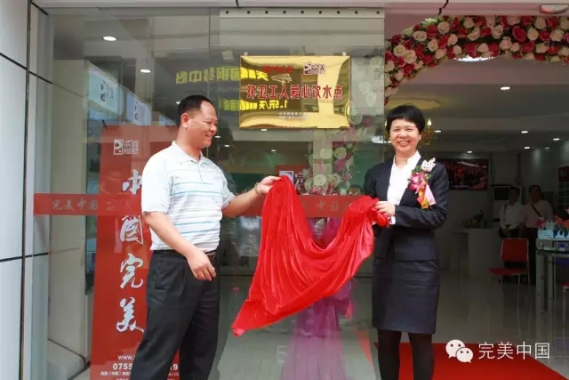 2014年五·一劳动节前夕,完美公司还在深圳市119间完美专卖店设立“环卫工人爱心饮水点”,免费提供“五个一”服务:免费提供一杯水、一把伞、一把椅子、一个针线包、一盒药,并倡议所有市民都来尊重、关爱环卫工人。据悉,“爱心饮水点”所用的水均通过完美公司金伟连牌净水机七级过滤,水质自然甘甜,口感清醇,在炎炎夏日为辛劳的环卫工人们送去清凉、健康。