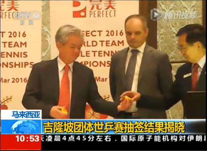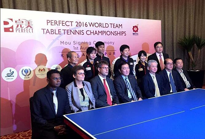 2016年吉隆坡团体世乒赛抽签于1月16日正式揭晓,据了解,本届赛事由完美(中国)有限公司冠名赞助,当天该公司董事长古润金为世乒赛进行抽签。其中,中国男队与澳大利亚、中华台北、希腊、捷克和朝鲜同组;中国女队则与中华台北、罗马尼亚、匈牙利、西班牙和东道主马来西亚同组。