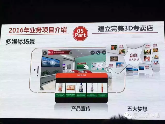 为更好的满足消费者的体验需求,为更好的配合完美业务人员拓展市场。完美公司即将推出移动互联网平台,3D效果体验完美专卖店和完美产品。
