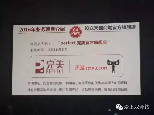 四:为更好的满足消费者的体验需求,2016年3月完美公司即将设立天猫商城官方旗舰店。