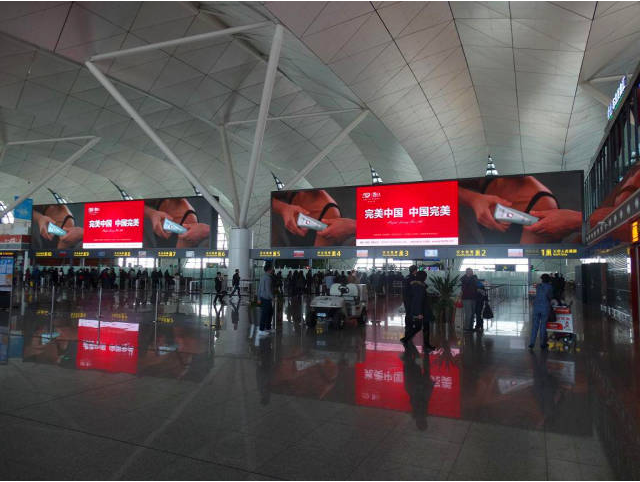 投放形式:T2安检通道LED广告屏轮播(1块)