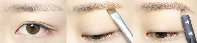 眉粉对于清新自然的裸妆来说绝对是一大利器。眉笔的化妆痕迹过于明显,用眉刷将自然、颜色浅一号的眉粉轻轻刷在眉毛的尾部,只需要按照原有的眉形淡淡描画,不必刻意修饰。画完之后,你可以在眉骨下方打上一些白色亮粉,能突出眉骨,整个脸也显得立体起来。