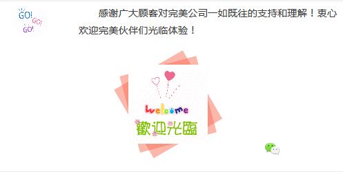 感谢广大顾客对完美公司一如既往的支持和理解!衷心欢迎完美伙伴们光临体验!