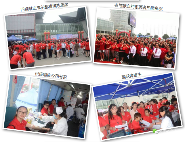 本次活动是河南分公司成立以来规模最大的献血活动,现场报名登记1100人,经过紧张的采血工作,成功献血人数达836人,献血总量达300150毫升。大爱永恒,没有血荒是患者的希望,更是我们的愿望!愿国人健康,愿世界和平!