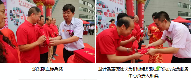仪式上,公司对连续献血6次以上志愿者和自发组织献血的完美服务中心分别颁发“献血标兵奖”和“慈善公益组织奖”,肯定他们无私的大爱之举。