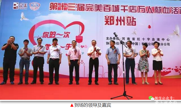7月18日,正值暑假伊始,河南分公司联合河南省红十字血液中心共同举办的“第十三届完美百城千店万人献血活动—郑州站”活动在郑东新区会展中心隆重举 行。河南省红十字卫计委医政处处长董薇、省红十字血液中心主任王兆福、省红十字血液中心副主任李建斌、省红十字血液中心招募办主任郭俊勇、省红十字血液中心招募办副主任沙建、省工商行政管理局公平交易处处长侯立宁、省工商行政管理局公平交易处副处长王宏、完美(中国)有限公司副董事长许国伟、业务中心副总经理岳新鸿、河南分公司总经理张建华及分公司员工、完美经销商等共逾千人参加了此次活动。