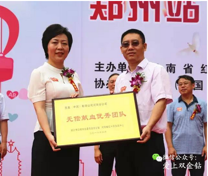 ▲河南分公司荣获”无偿献血优秀团队奖“