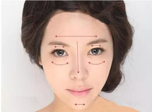 在额头、两颊、鼻梁、下巴等轻点适量的隔离霜或粉底液,用手指或海绵块轻轻推匀,注意新手往往会因为手法不够轻柔和熟练而推不均匀,因此彩妆的手法应该多练练。