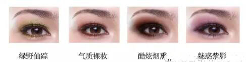 眼影最普通也最简单的一种方法:同一色彩以不同深、浅的色彩,自眼睑下方至上方、由深至浅渐次画上,可以塑造目光深邃的效果。眼睛看起来会变大至少 1/3 ,且很有神、很亮。