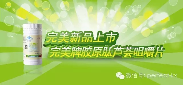 完美公司诚意推出“完美牌胶原肽芦荟咀嚼片”,为您增强身体免疫力,改善皮肤水份,让美丽不只留于表面,让您由内而外散发耀人光彩!
