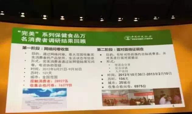 通过这种科学的跟踪调查,对热销多年的完美产品的安全性和有效性进行再一次的评估,回答消费者“保健食品是否安全,保健食品是否有效”的疑问,以及回答社会和政府“保健食品业能否改善全民健康、降低医疗支出,是否应大力发展”的问题。