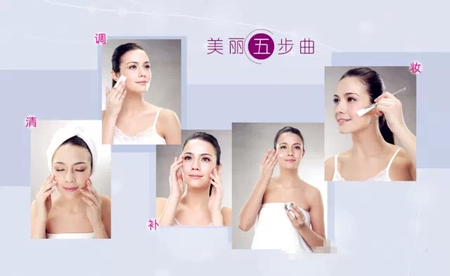 步骤:1.卸妆及清洁2.爽肤3.袪角质4.爽肤5.脸部按摩6.清洗7.爽肤8.上面膜9.清洗10.爽肤11.润肤12.美白防晒隔离