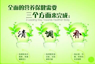《清、调、补》不是只清、只调、只补,而是能同时起到“清、调、补”的作用,并且同时清六大通道、全面均衡的补充七大营养、达到同时调节人体八大系统的目的。从人体最基本单位细胞调节,从而根本改善细胞生存环境,达到人体健康的目的。