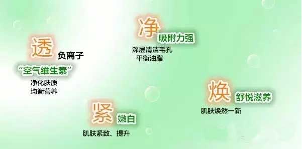短短几分钟,就如同给肌肤一次排毒SPA。深层清洁肌肤、平衡油脂、净化肤质,让备受城市紫外线、污染、辐射、压力等多重挑战的肌肤焕然一新,让肌肤回复年轻、紧致、通透、焕彩!