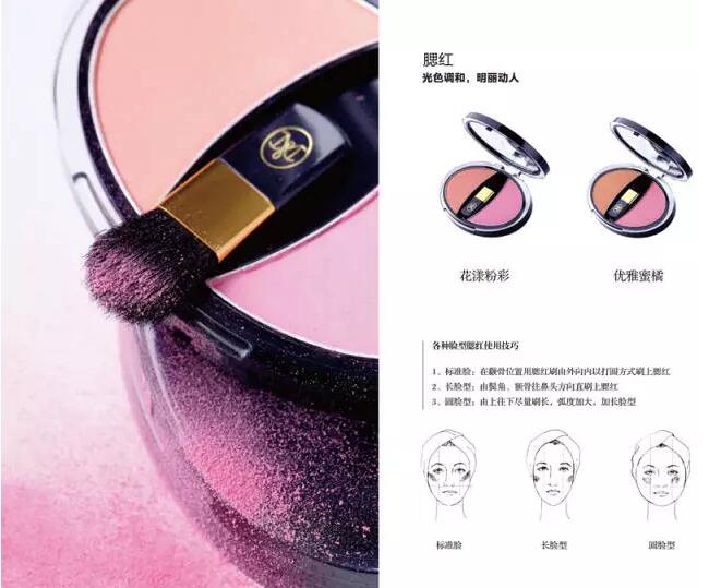 ②长脸型:由鬓角、额骨往鼻头方向直刷上腮红