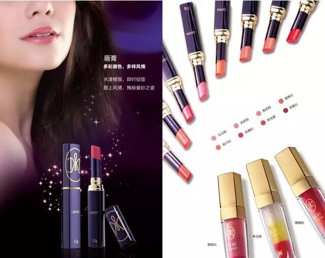 唇膏:多彩唇色,多样风情。水漾樱唇,即时绽放。唇上风情,掩映曼妙之姿。