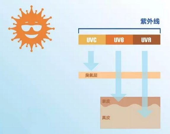 防晒,是指防止“紫外线”对人体的伤害。紫外线可以分为:UVA,UVB和UVC。UVC在臭氧层的防护下被隔离,而UVA和UVB则能辐射到地面。